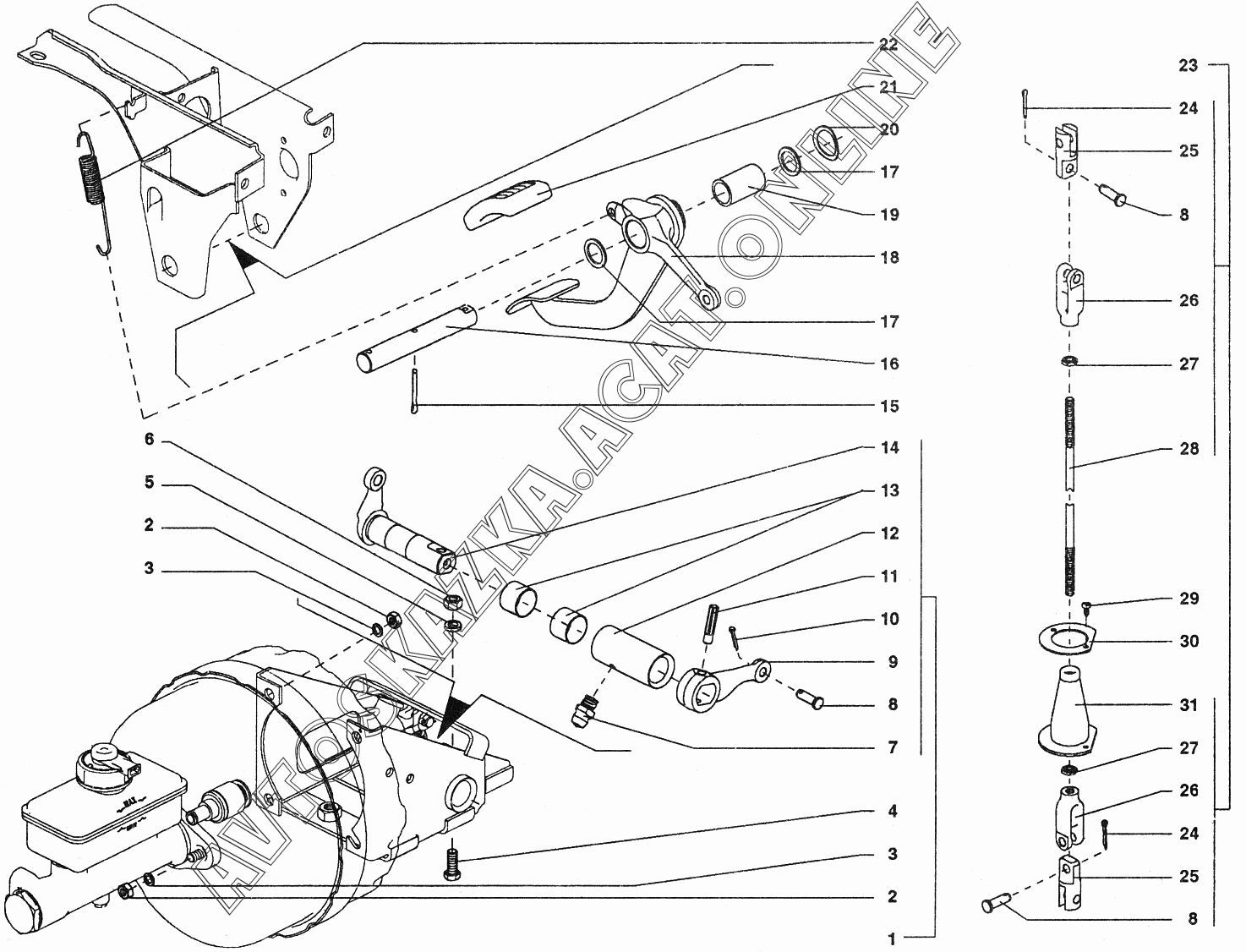 | Название детали: | Установка привода главного цилиндра тормозов |