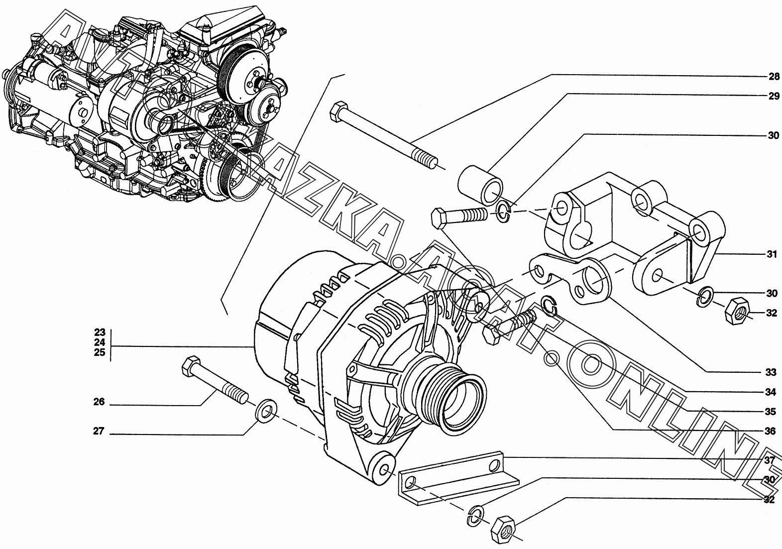 | Название детали: | Кронштейн генератора верхний |