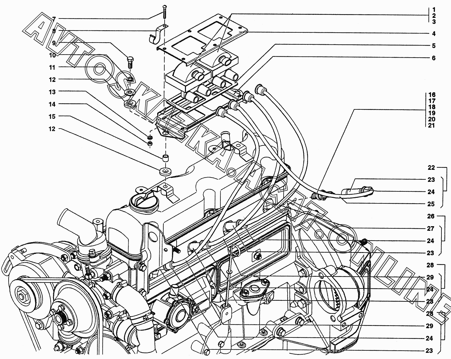 Свечи и провода зажигания УАЗ 37419 (374194 (Euro-2), 374194 (Euro-3), 374195 (Euro-2), 374195 (Euro-3))