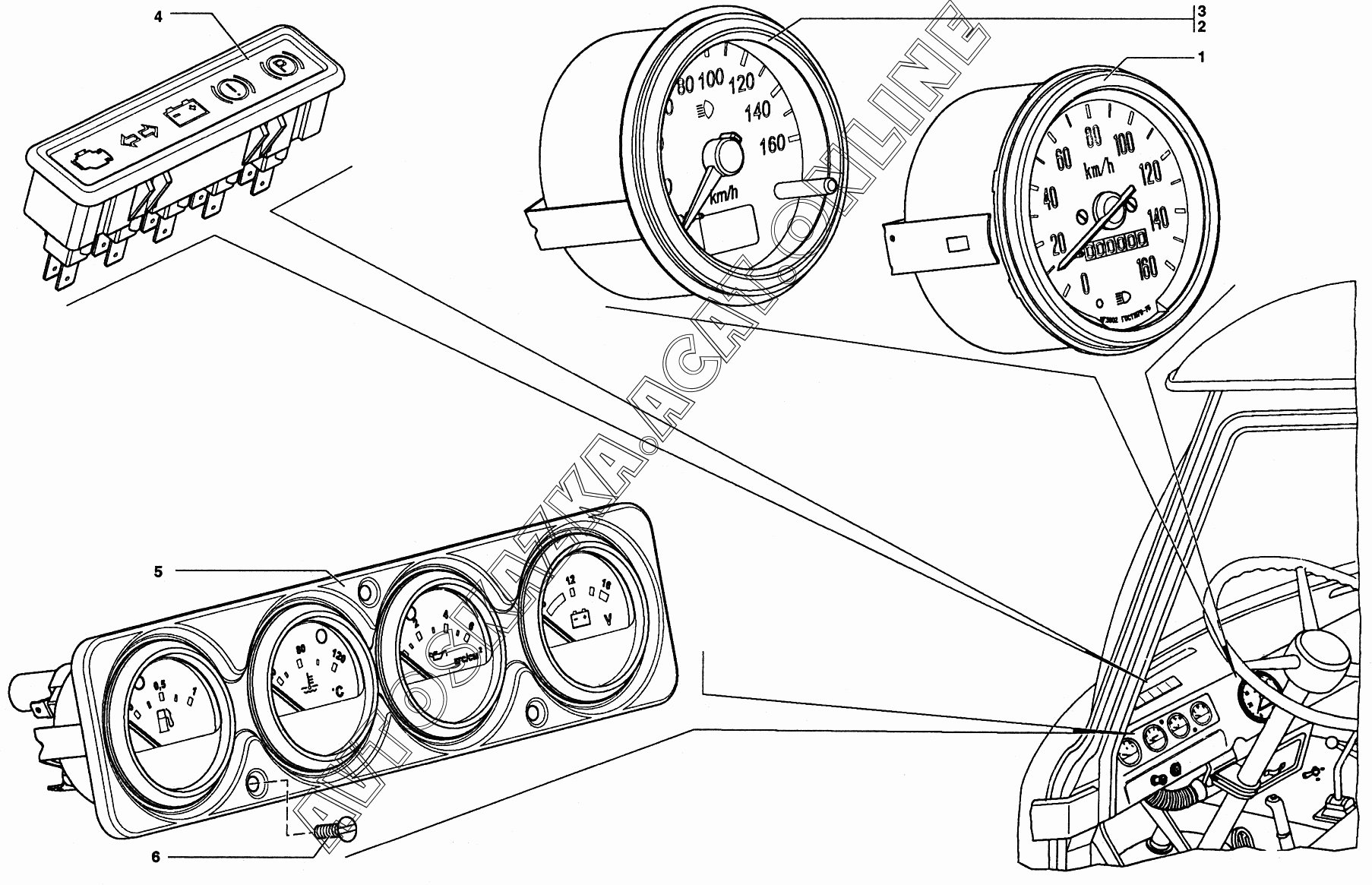 Спидометр, фонари контрольных ламп, щиток приборов УАЗ 37419 (374194 (Euro-2), 374194 (Euro-3), 374195 (Euro-2), 374195 (Euro-3))