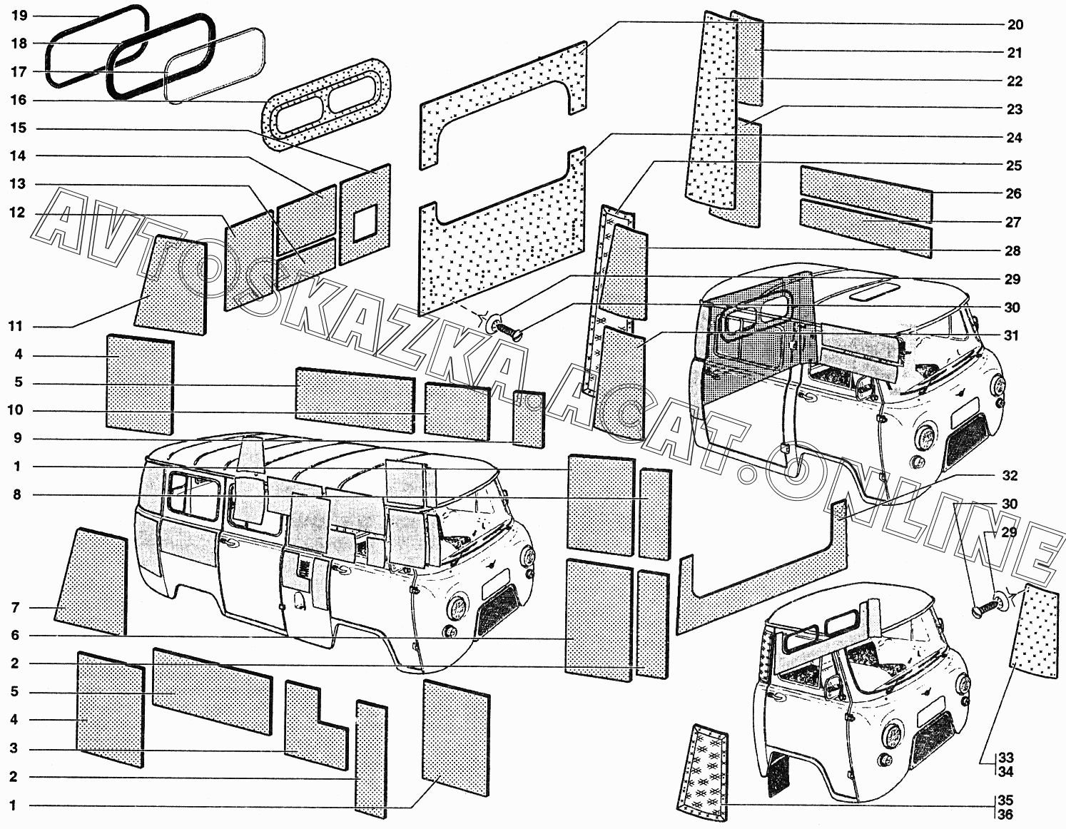 Термошумоизоляция боковины, обивка задка, окно задка УАЗ 37419 (374194 (Euro-2), 374194 (Euro-3), 374195 (Euro-2), 374195 (Euro-3))