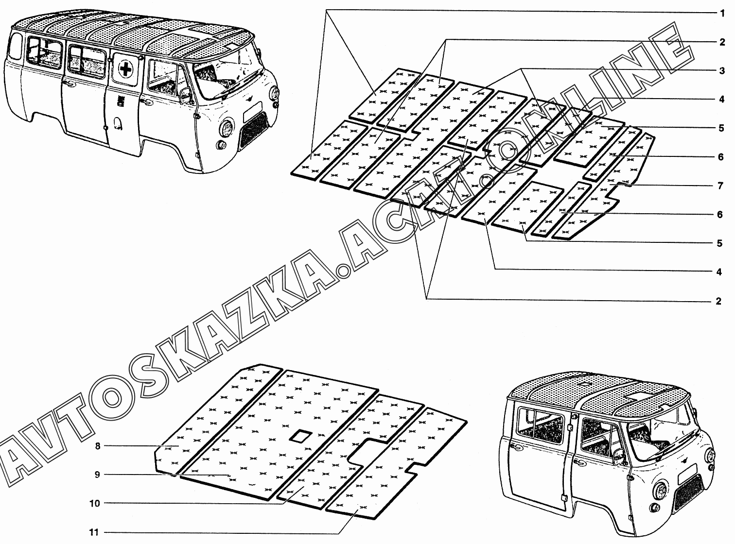 Термошумоизоляция крыши УАЗ 37419 (374194 (Euro-2), 374194 (Euro-3), 374195 (Euro-2), 374195 (Euro-3))