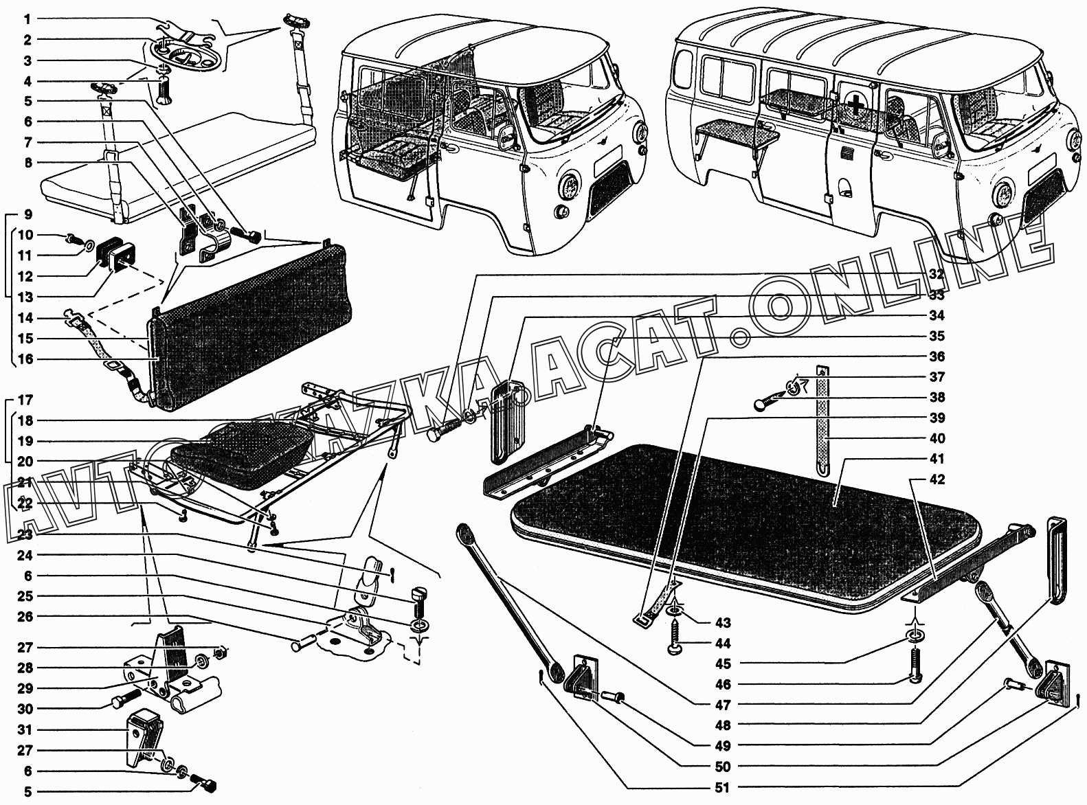 Сиденье заднее и сиденье откидное УАЗ 37419 (374194 (Euro-2), 374194 (Euro-3), 374195 (Euro-2), 374195 (Euro-3))