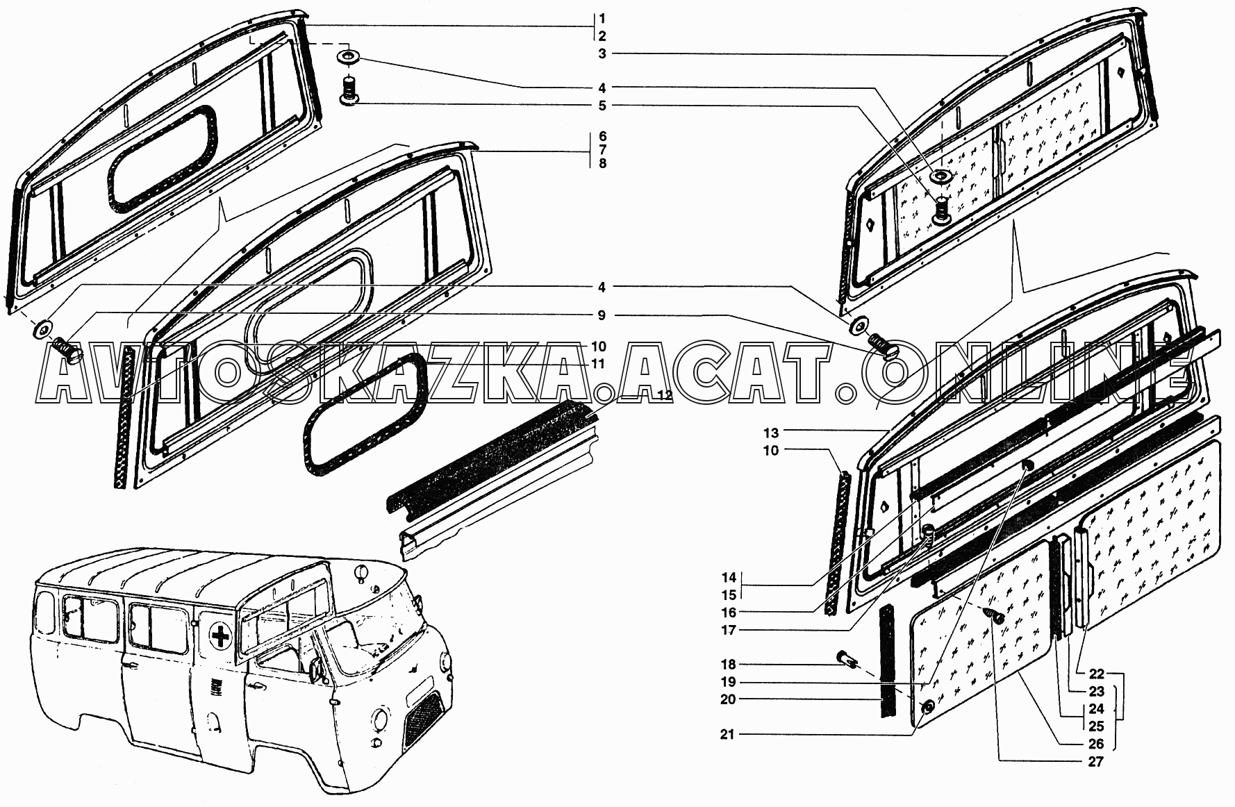 Перегородка кузова в сборе и окно перегородки УАЗ 37419 (374194 (Euro-2), 374194 (Euro-3), 374195 (Euro-2), 374195 (Euro-3))