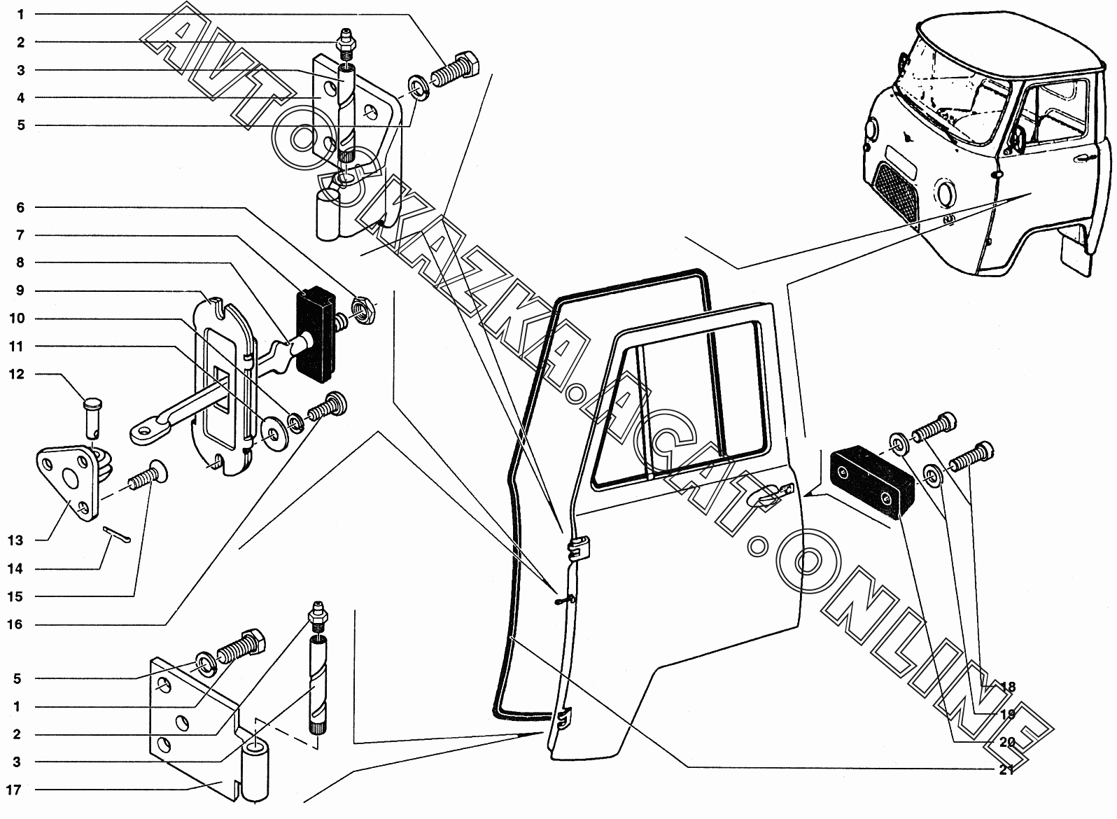 Навеска и уплотнитель передней двери УАЗ 37419 (374194 (Euro-2), 374194 (Euro-3), 374195 (Euro-2), 374195 (Euro-3))