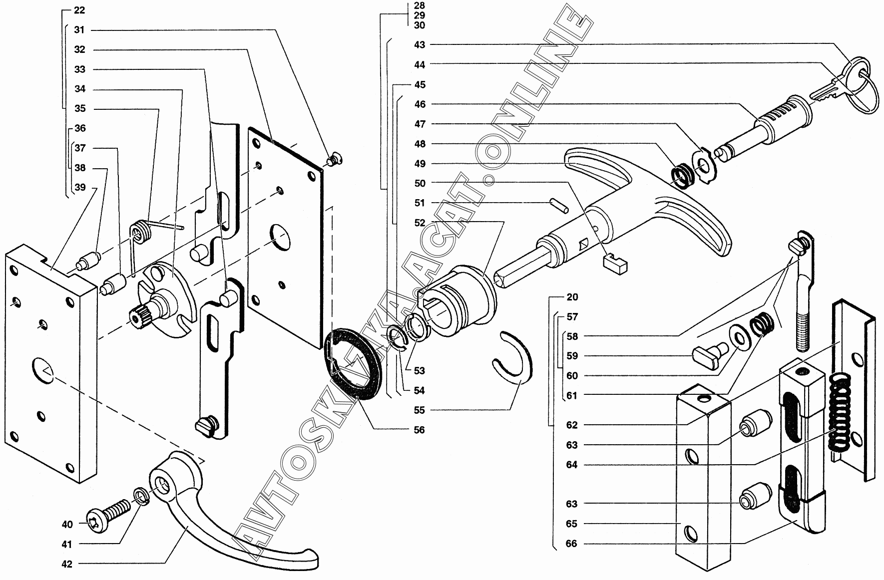 Замок и ручки двери задка УАЗ 37419 (374194 (Euro-2), 374194 (Euro-3), 374195 (Euro-2), 374195 (Euro-3))