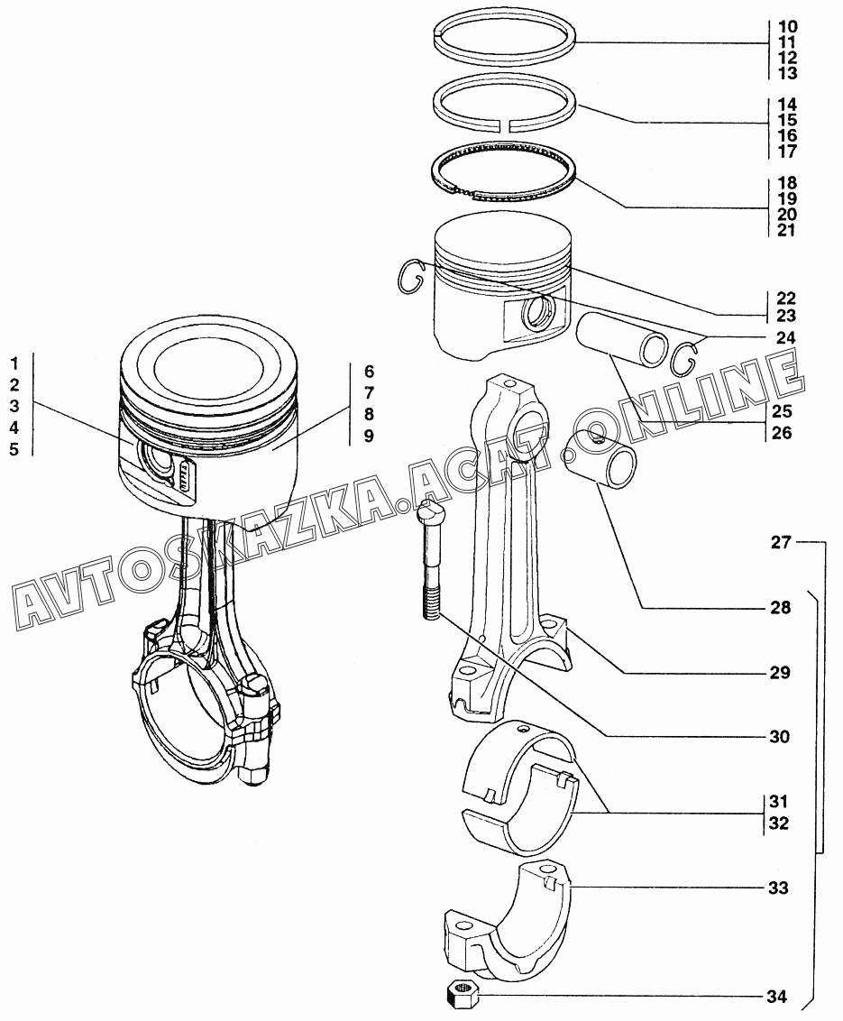 Поршень и шатун УАЗ 39099 (390994 (Euro-2), 390994 (Euro-3), 390995 (Euro-2), 390995 (Euro-3))