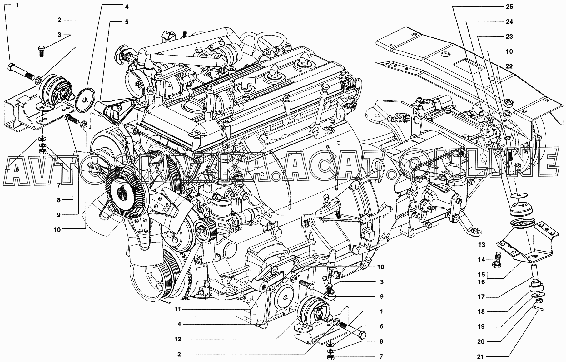 Двигатель в сборе (полностью укомплектованный для установки на шасси, двигатель)