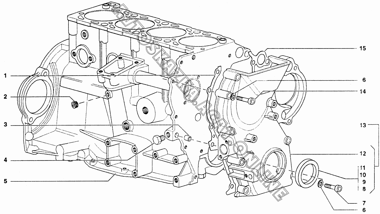 | Название детали: | Блок цилиндров с крышками коренных подшипников |