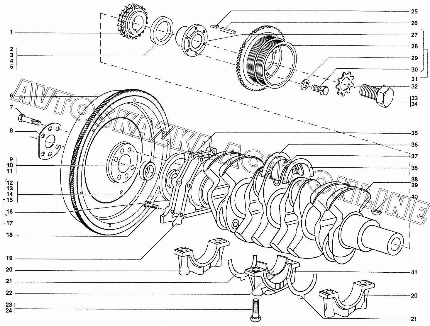 Вал коленчатый и маховик УАЗ 39099 (390994 (Euro-2), 390994 (Euro-3), 390995 (Euro-2), 390995 (Euro-3))