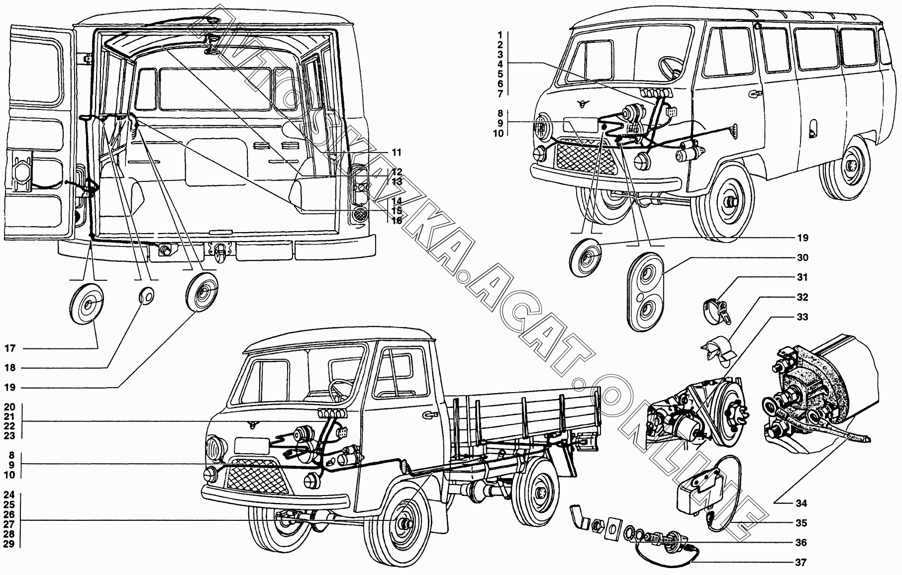 Электропровода УАЗ 39099 (390994 (Euro-2), 390994 (Euro-3), 390995 (Euro-2), 390995 (Euro-3))
