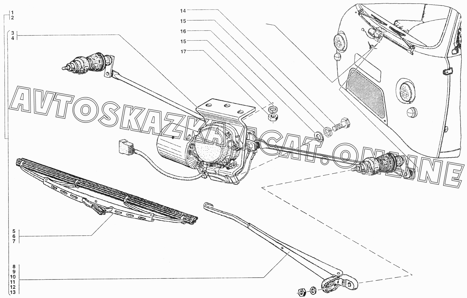 Стеклоочиститель и привод УАЗ 39099 (390994 (Euro-2), 390994 (Euro-3), 390995 (Euro-2), 390995 (Euro-3))