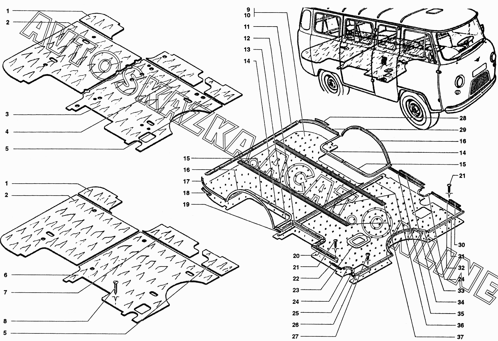 Настил и коврики пола УАЗ 39099 (390994 (Euro-2), 390994 (Euro-3), 390995 (Euro-2), 390995 (Euro-3))