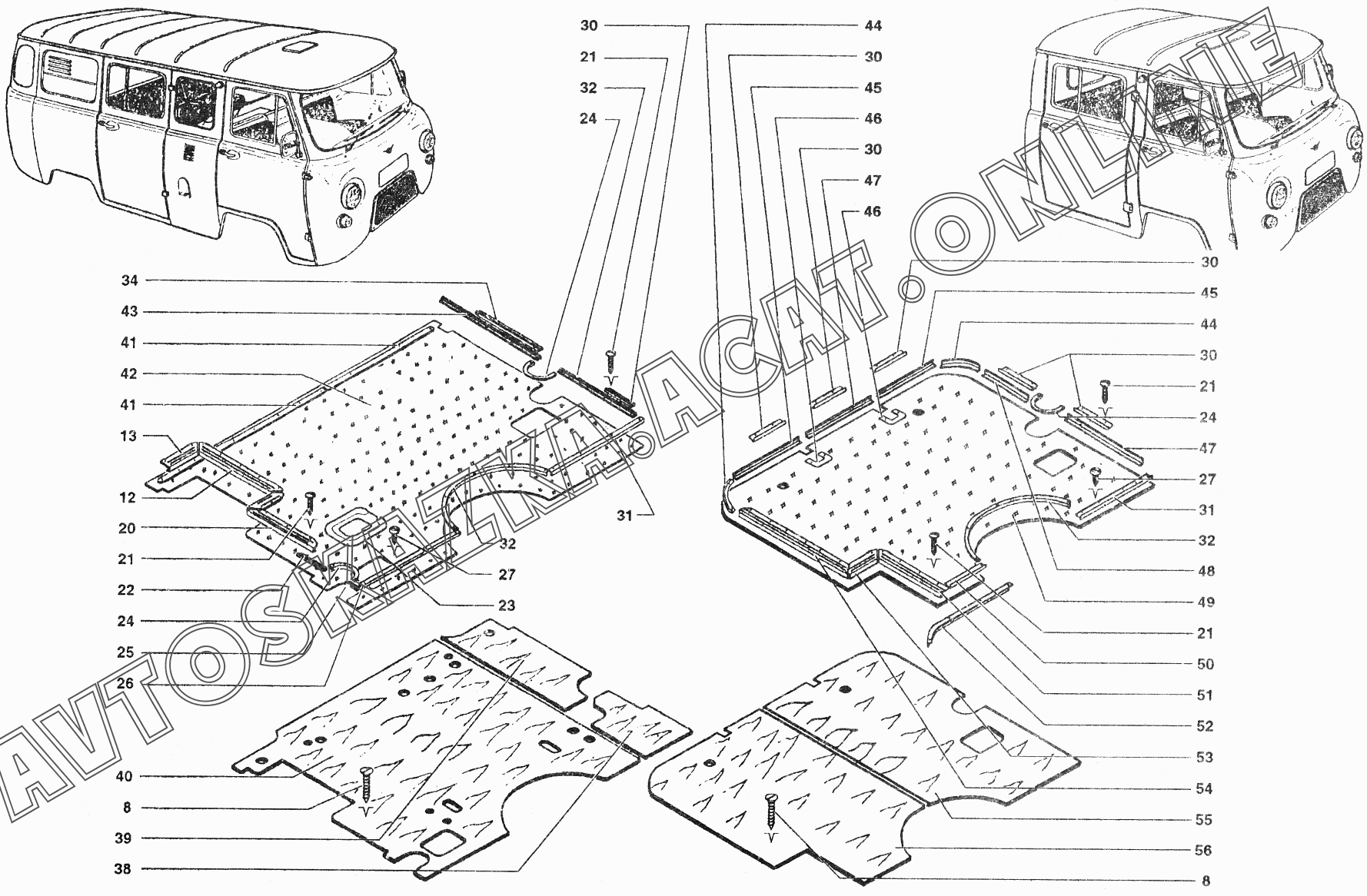 Настил и коврики пола УАЗ 39099 (390994 (Euro-2), 390994 (Euro-3), 390995 (Euro-2), 390995 (Euro-3))
