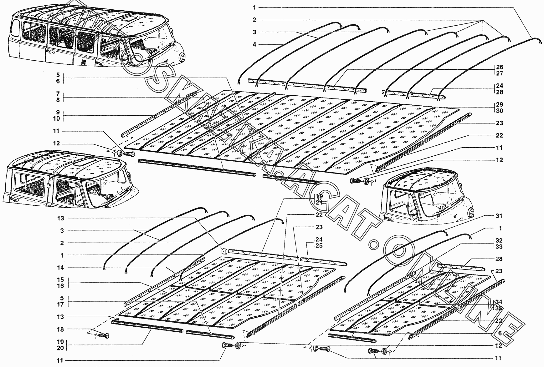 Обивка крыши УАЗ 39099 (390994 (Euro-2), 390994 (Euro-3), 390995 (Euro-2), 390995 (Euro-3))