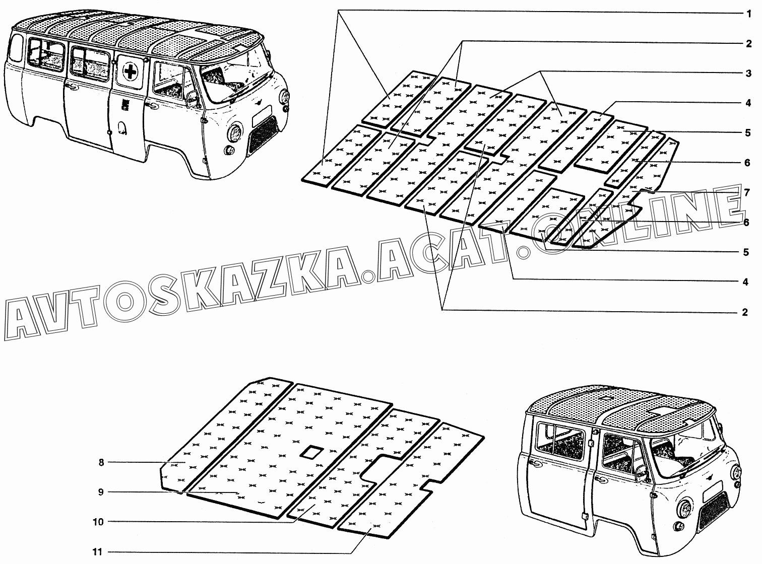 Термошумоизоляция крыши УАЗ 39099 (390994 (Euro-2), 390994 (Euro-3), 390995 (Euro-2), 390995 (Euro-3))