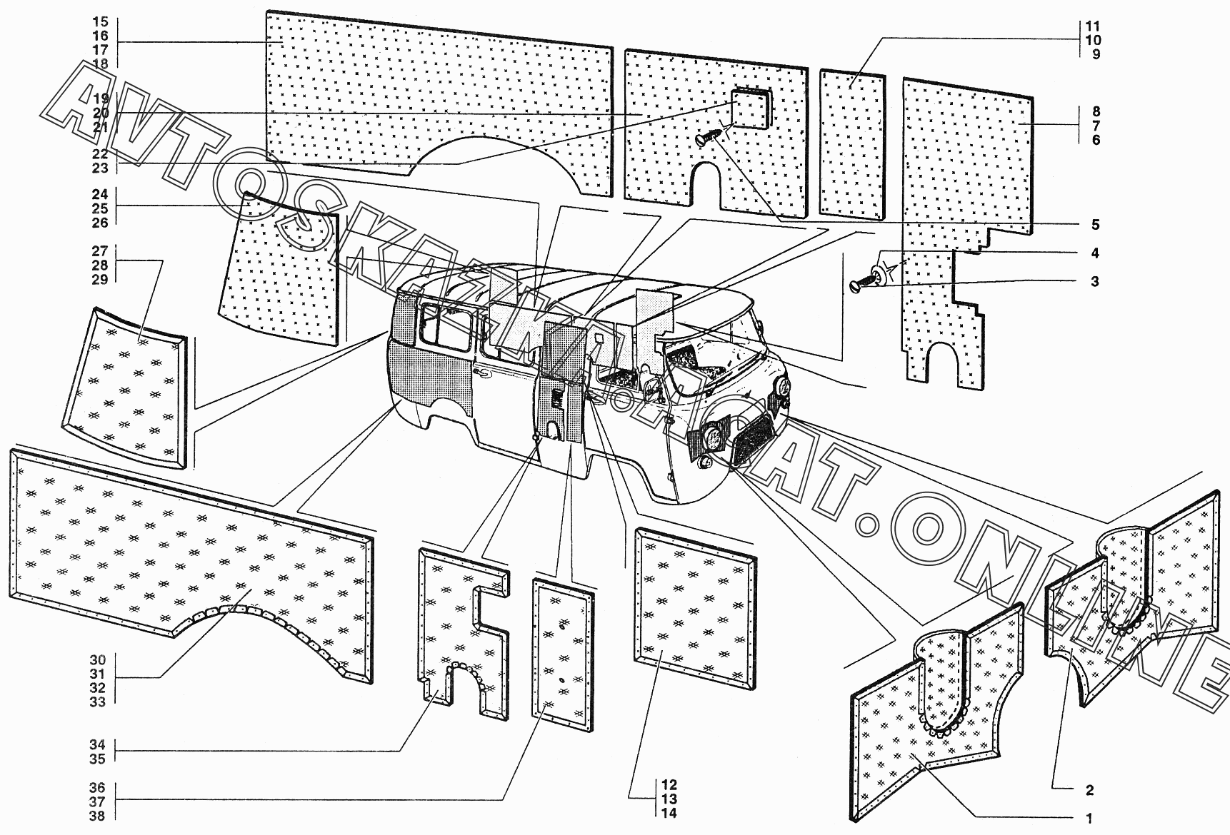 Термошумоизоляция передка, обивка боковины УАЗ 39099 (390994 (Euro-2), 390994 (Euro-3), 390995 (Euro-2), 390995 (Euro-3))