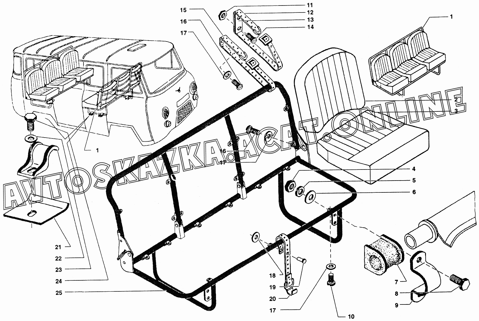 Сиденье трехместное в сборе УАЗ 39099 (390994 (Euro-2), 390994 (Euro-3), 390995 (Euro-2), 390995 (Euro-3))