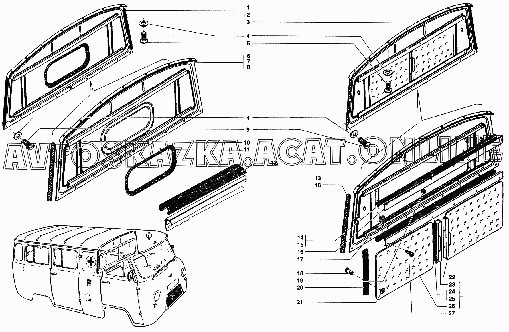 Перегородка кузова в сборе и окно перегородки УАЗ 39099 (390994 (Euro-2), 390994 (Euro-3), 390995 (Euro-2), 390995 (Euro-3))