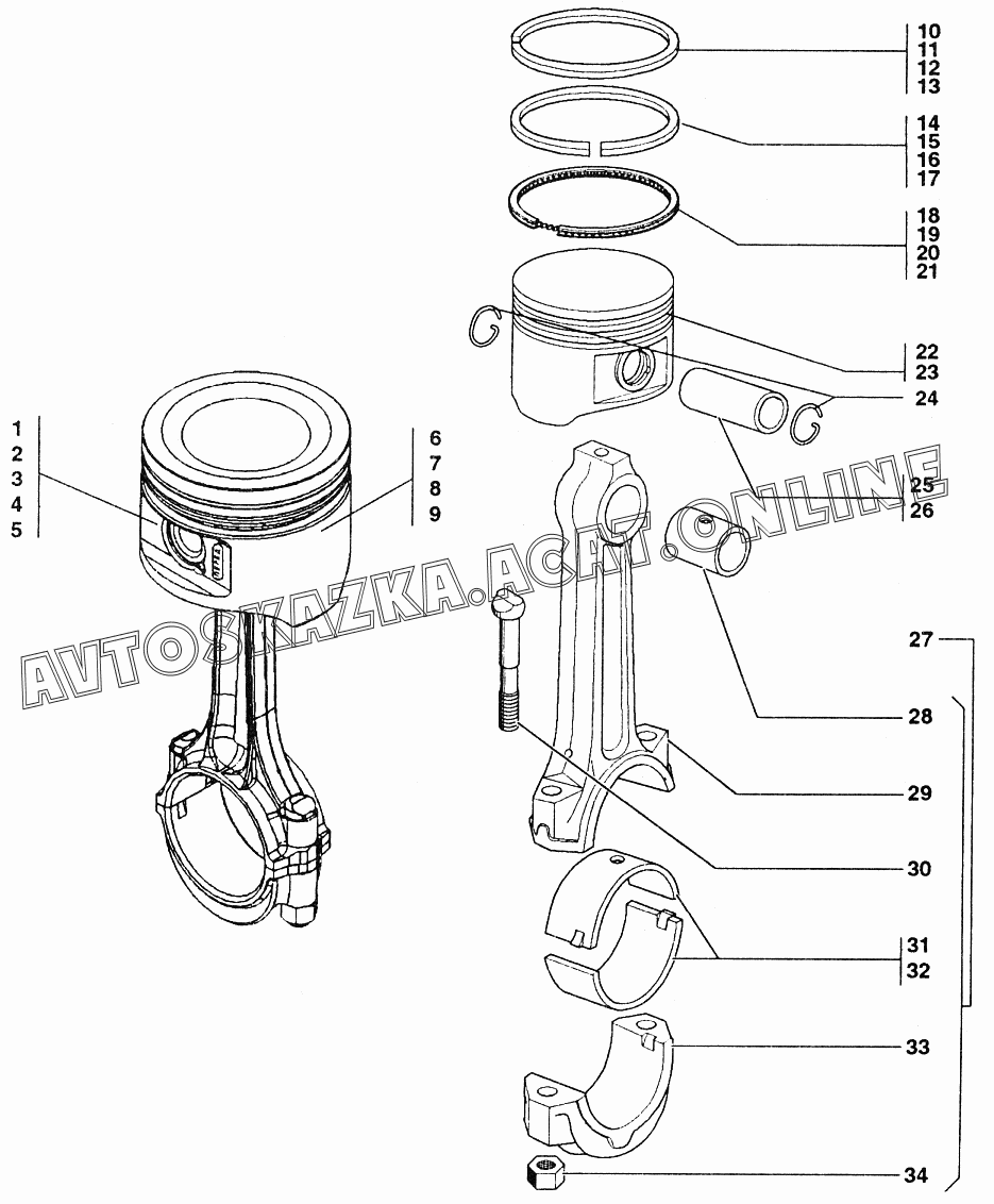 Поршень и шатун УАЗ 39094 (390944 (Euro-2), 390944 (Euro-3), 390945 (Euro-2), 390945 (Euro-3))