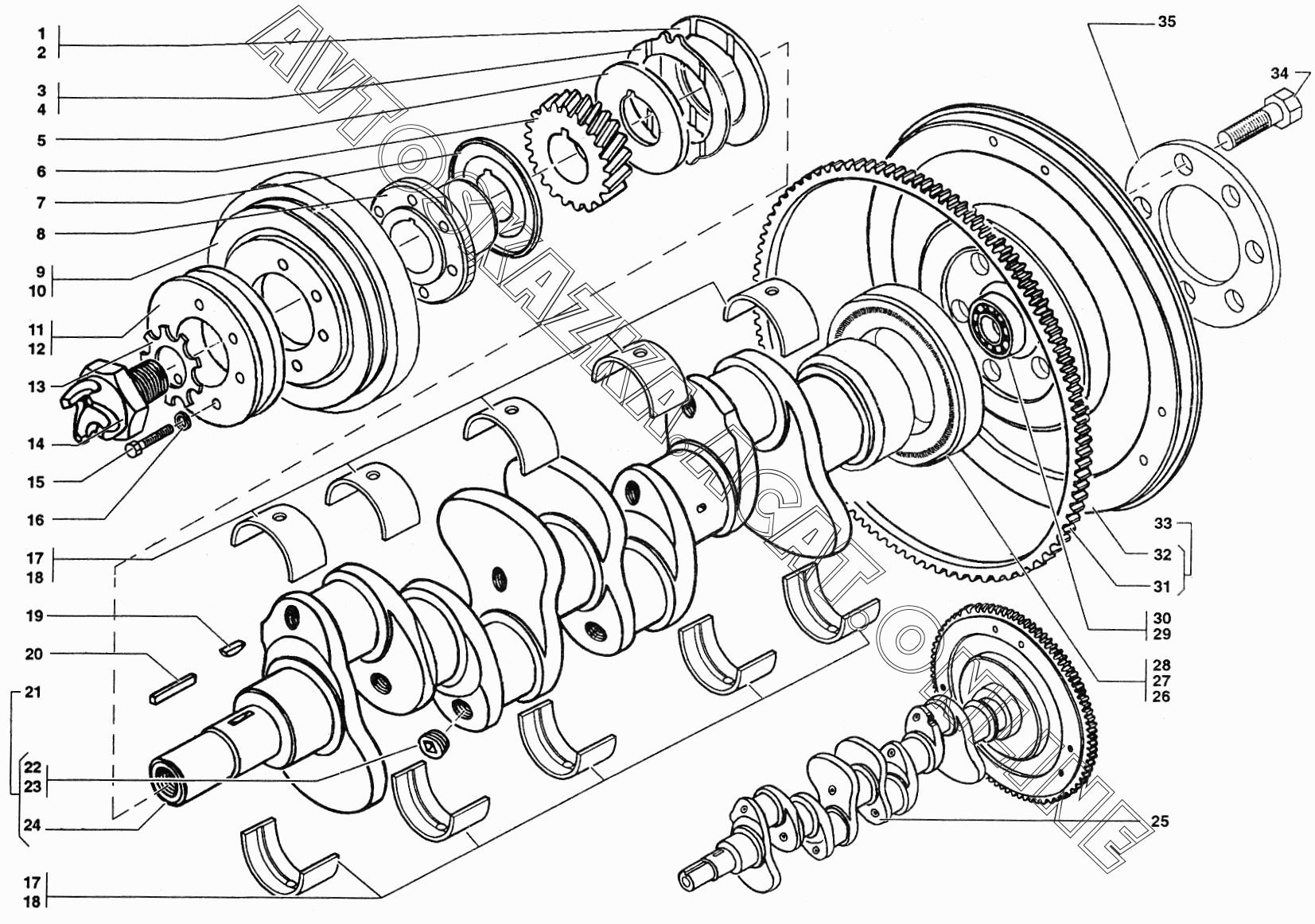 | Название детали: | Вал коленчатый, маховик и сцепление в сборе |