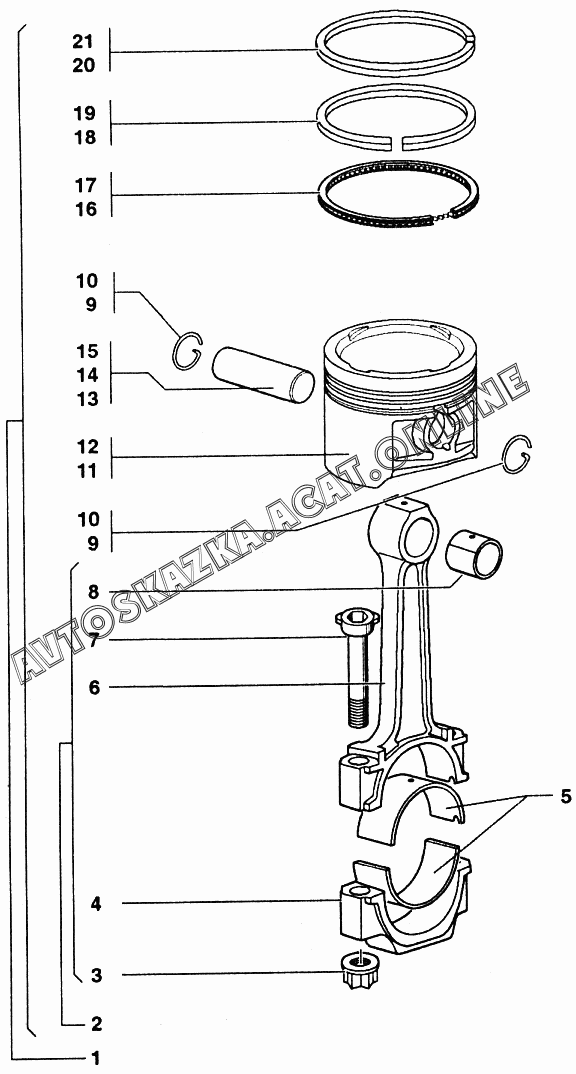 | Название детали: | Поршень, палец поршневой и стопорные кольца (комплект) |