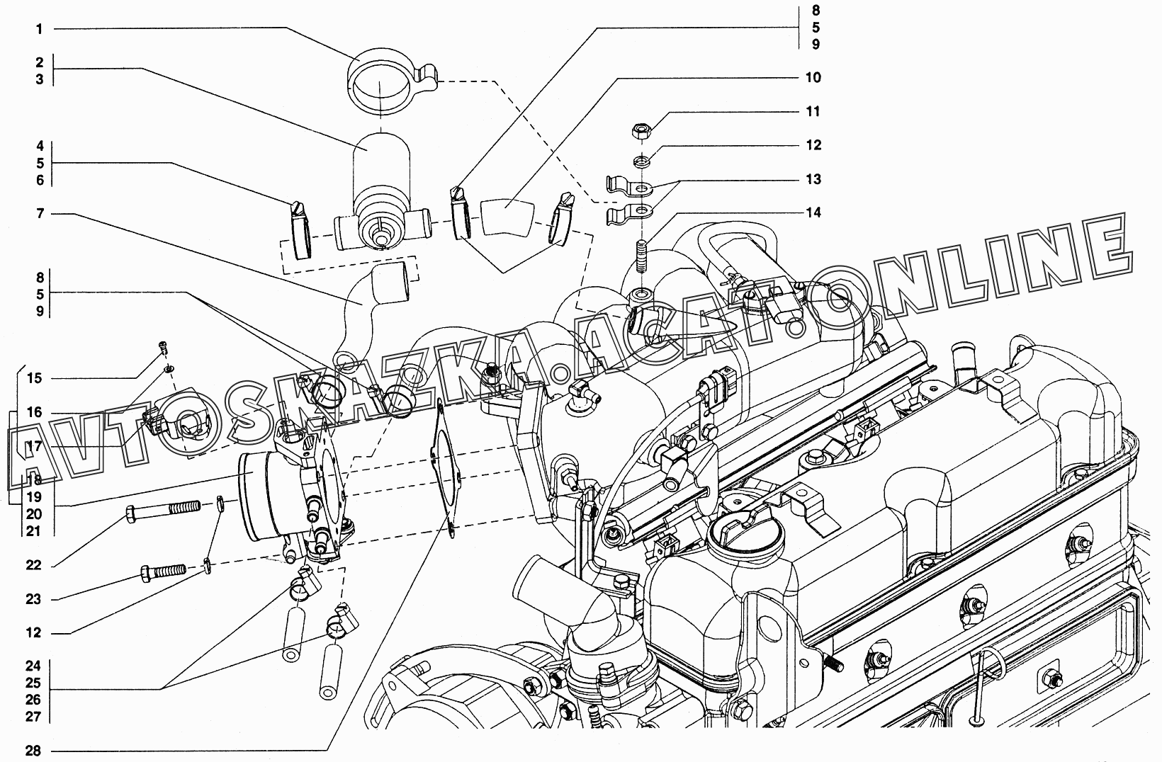 Регулятор подачи дополнительного воздуха, патрубок подачи воздуха для впрыска топлива с электронным управлением УАЗ 39094 (390944 (Euro-2), 390944 (Euro-3), 390945 (Euro-2), 390945 (Euro-3))