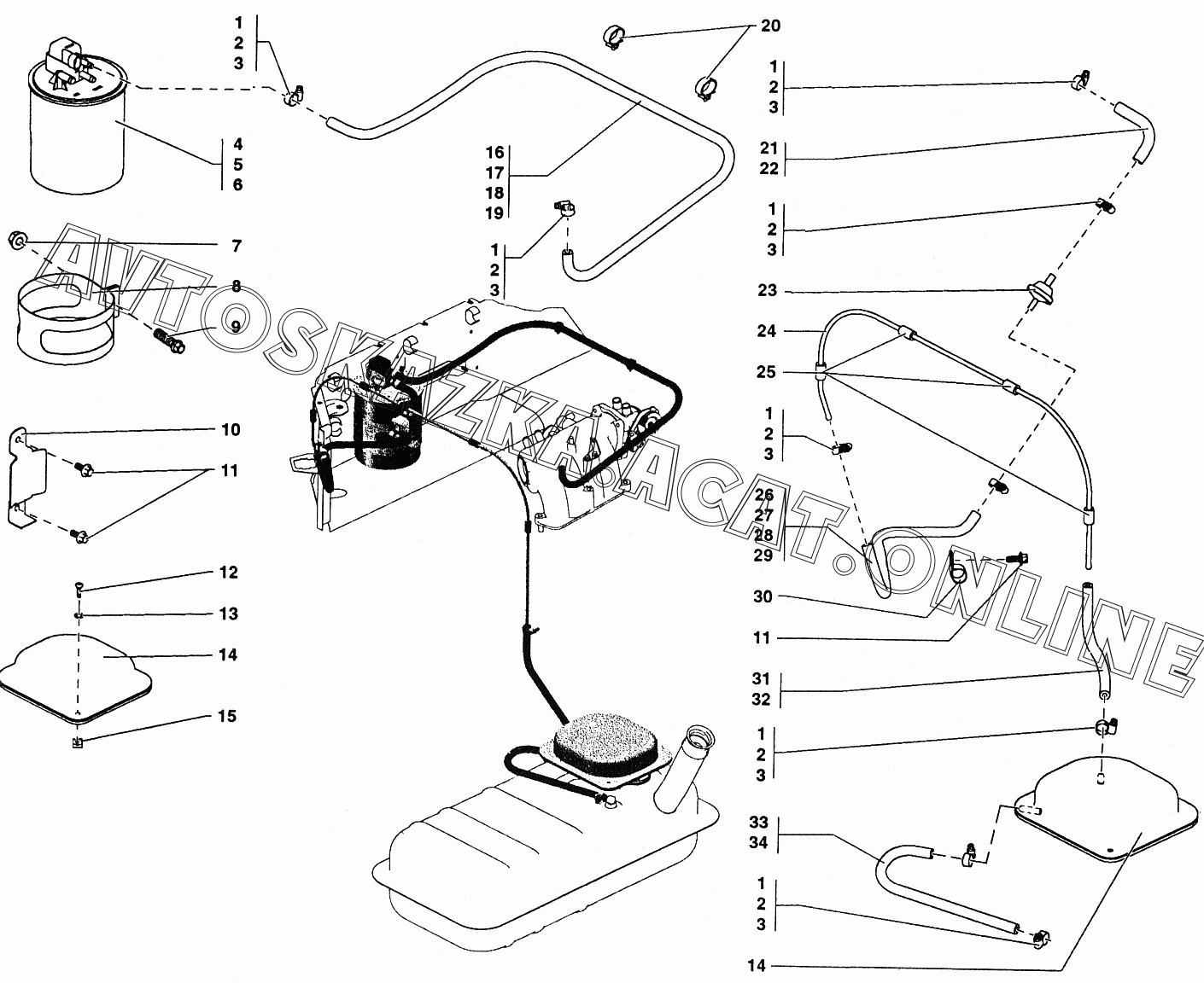 Улавливатель и магистрали паров топлива УАЗ 39094 (390944 (Euro-2), 390944 (Euro-3), 390945 (Euro-2), 390945 (Euro-3))