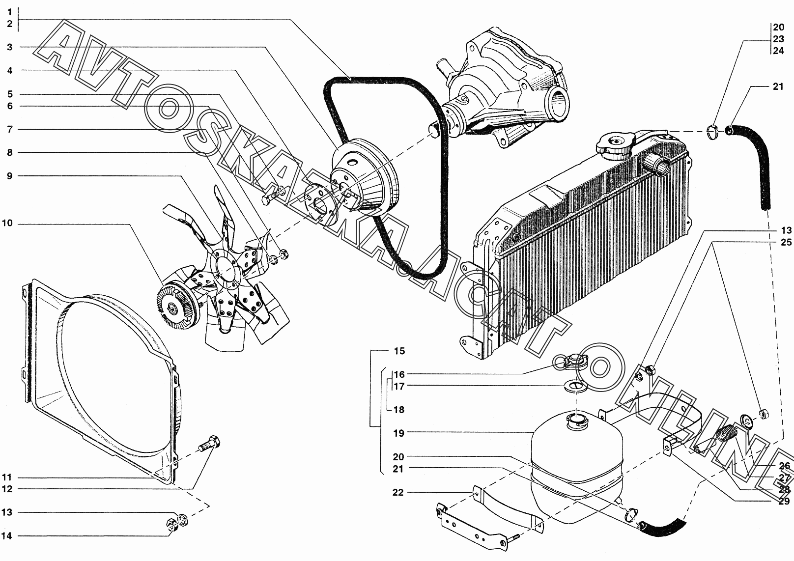 Вентилятор, кожух вентилятора, бачок расширительный УАЗ 39094 (390944 (Euro-2), 390944 (Euro-3), 390945 (Euro-2), 390945 (Euro-3))