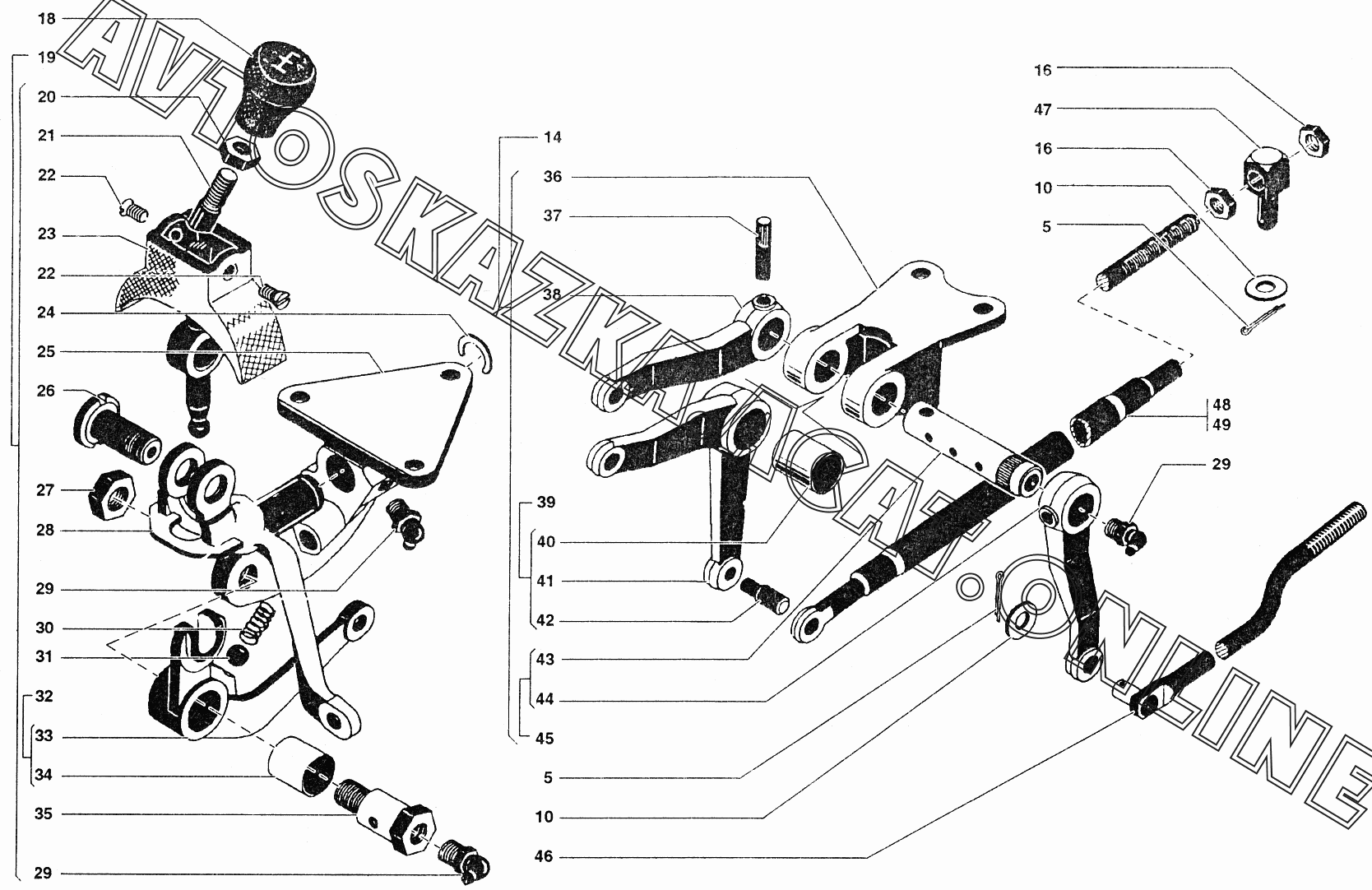 Привод управления механизмом переключения передач УАЗ 39094 (390944 (Euro-2), 390944 (Euro-3), 390945 (Euro-2), 390945 (Euro-3))