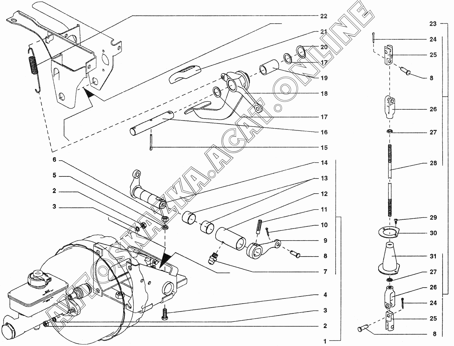 | Название детали: | Установка привода главного цилиндра тормозов |
