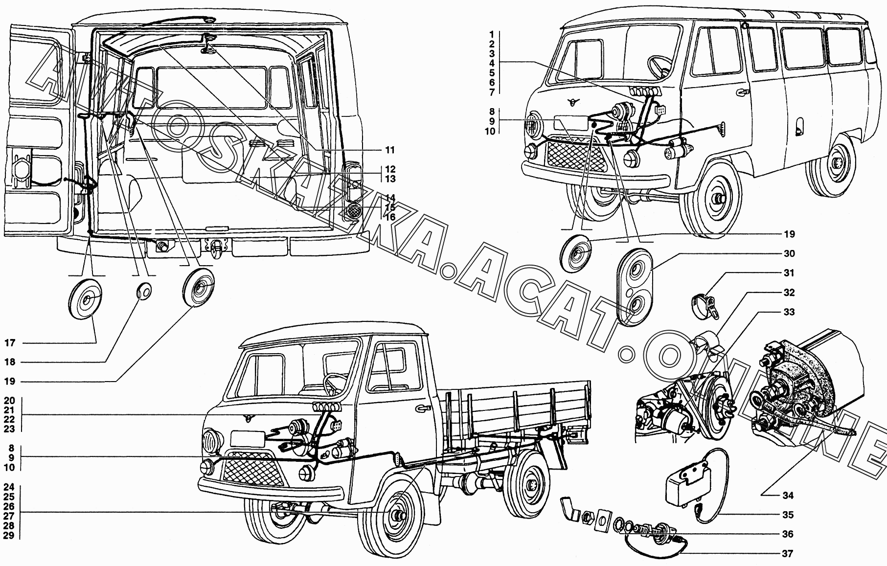 Электропровода УАЗ 39094 (390944 (Euro-2), 390944 (Euro-3), 390945 (Euro-2), 390945 (Euro-3))