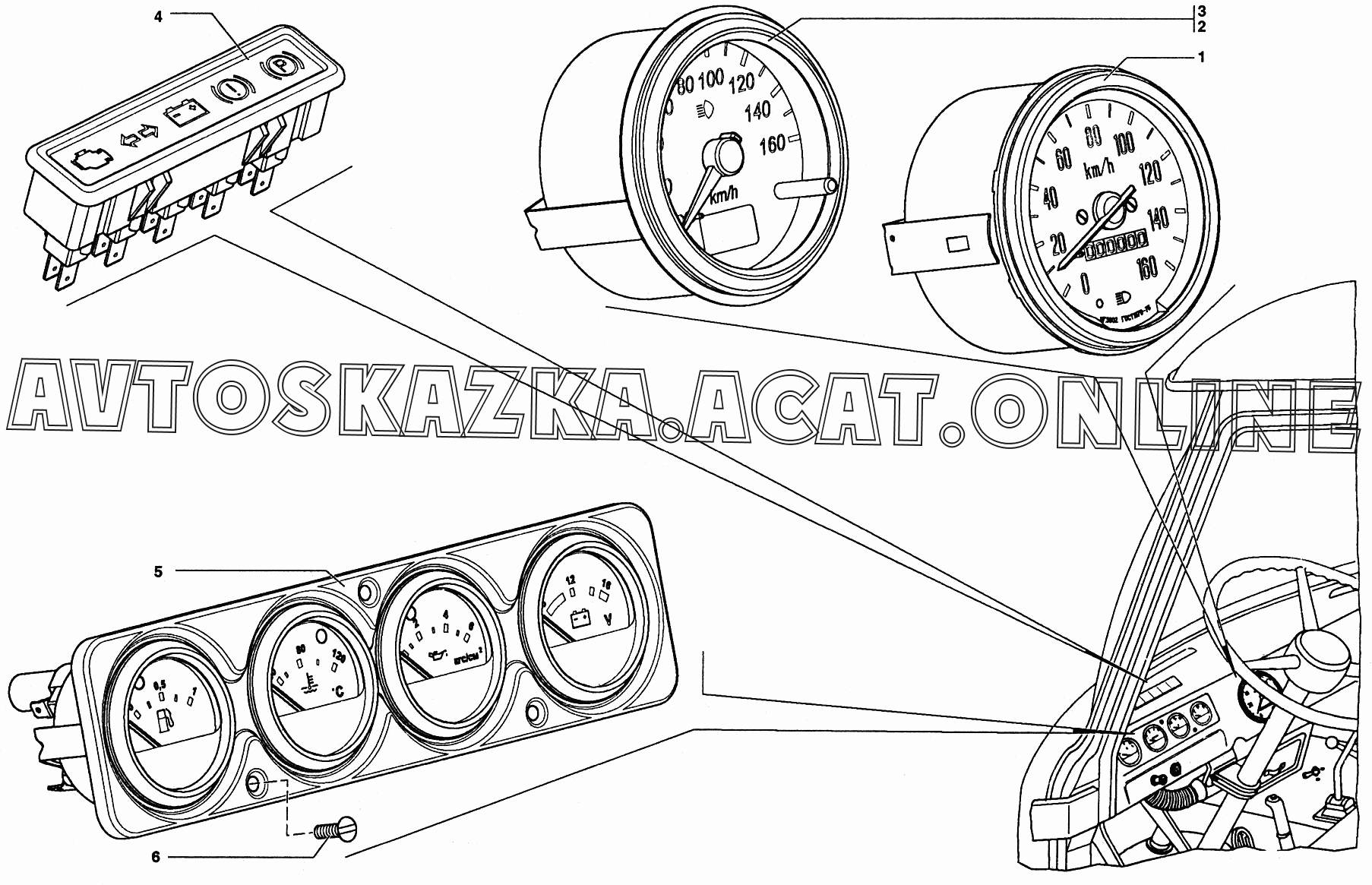Спидометр, фонари контрольных ламп, щиток приборов УАЗ 39094 (390944 (Euro-2), 390944 (Euro-3), 390945 (Euro-2), 390945 (Euro-3))