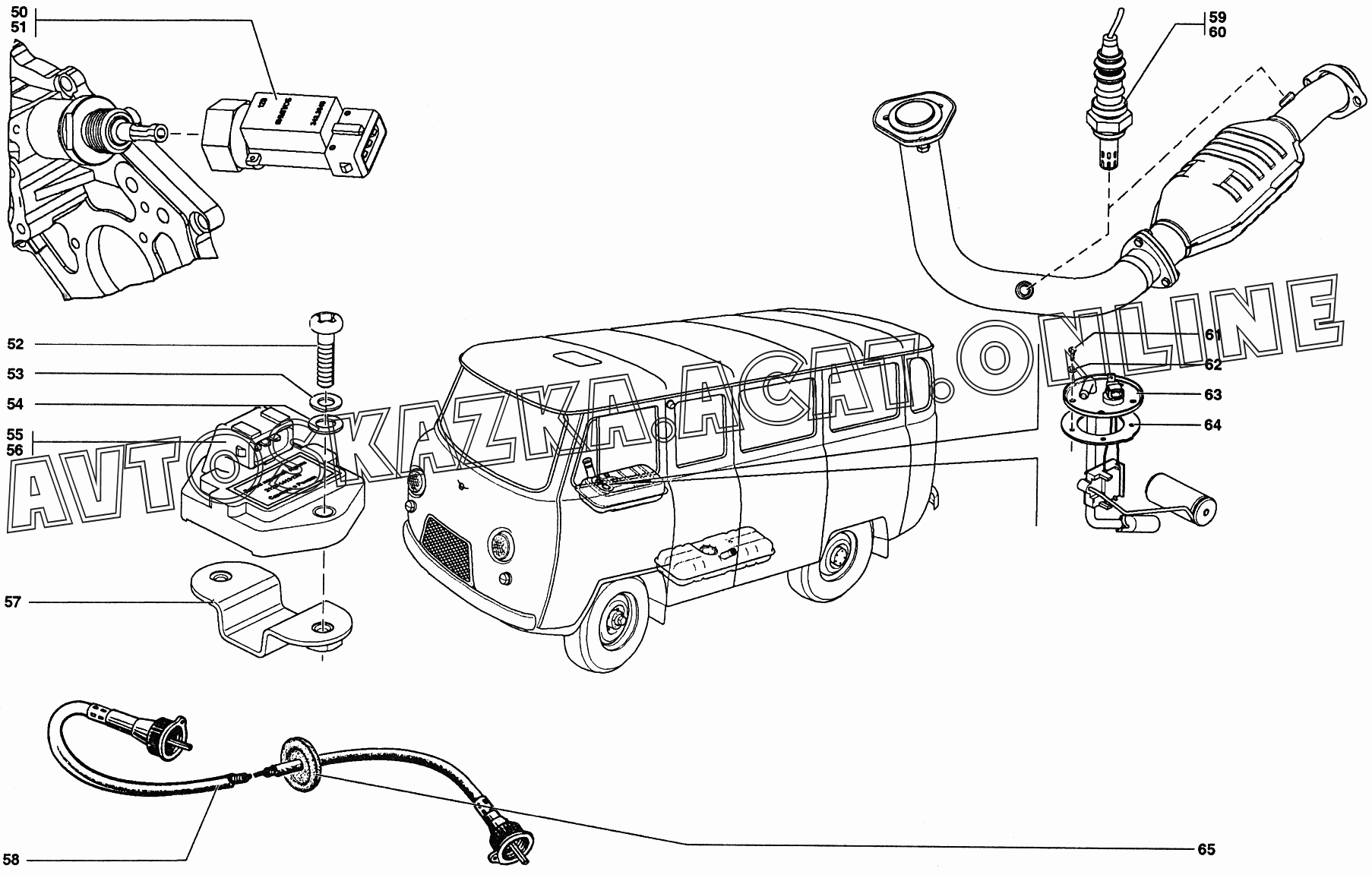 Валы гибкие, приборы специальные, датчик указателя уровня топлива, датчик скорости, датчик детонаций УАЗ 39094 (390944 (Euro-2), 390944 (Euro-3), 390945 (Euro-2), 390945 (Euro-3))