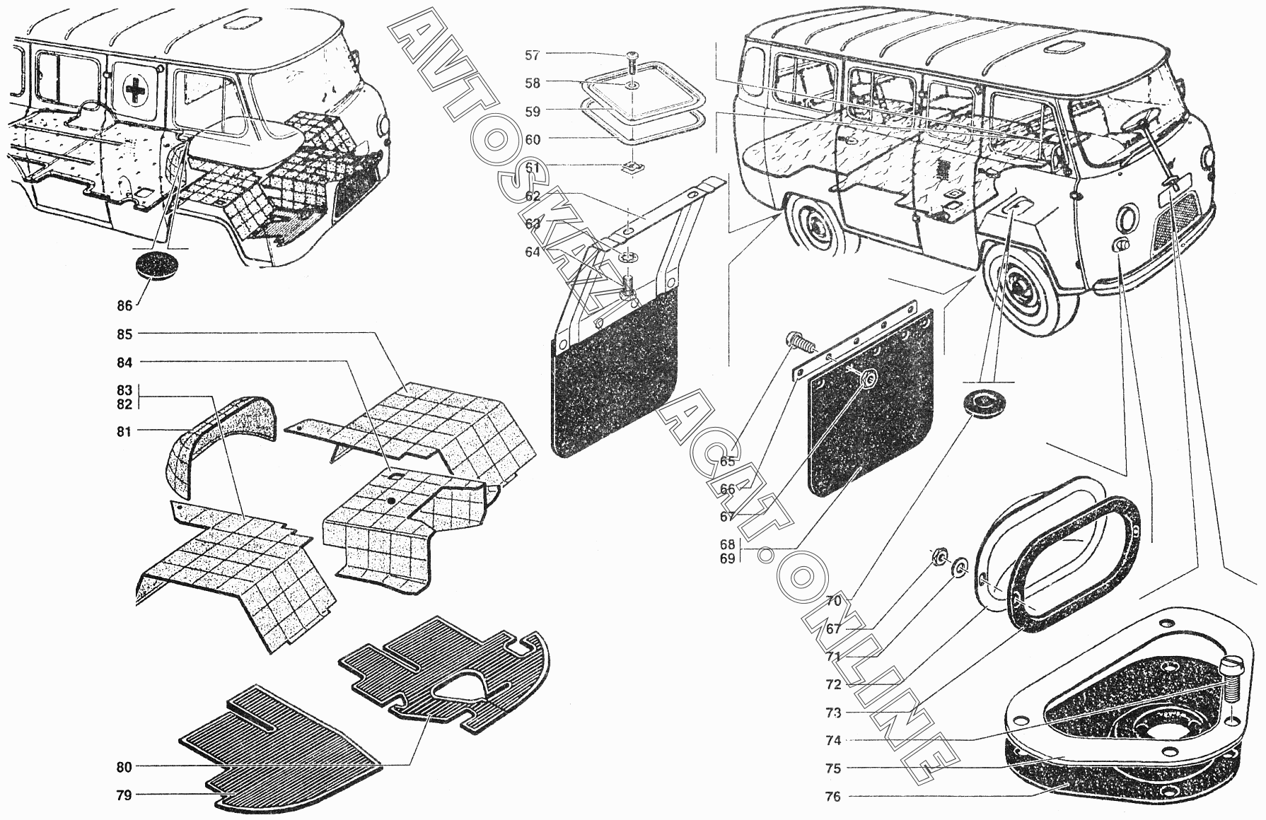 Кожухи пола, коврики пола, шумоизоляция пола УАЗ 39094 (390944 (Euro-2), 390944 (Euro-3), 390945 (Euro-2), 390945 (Euro-3))
