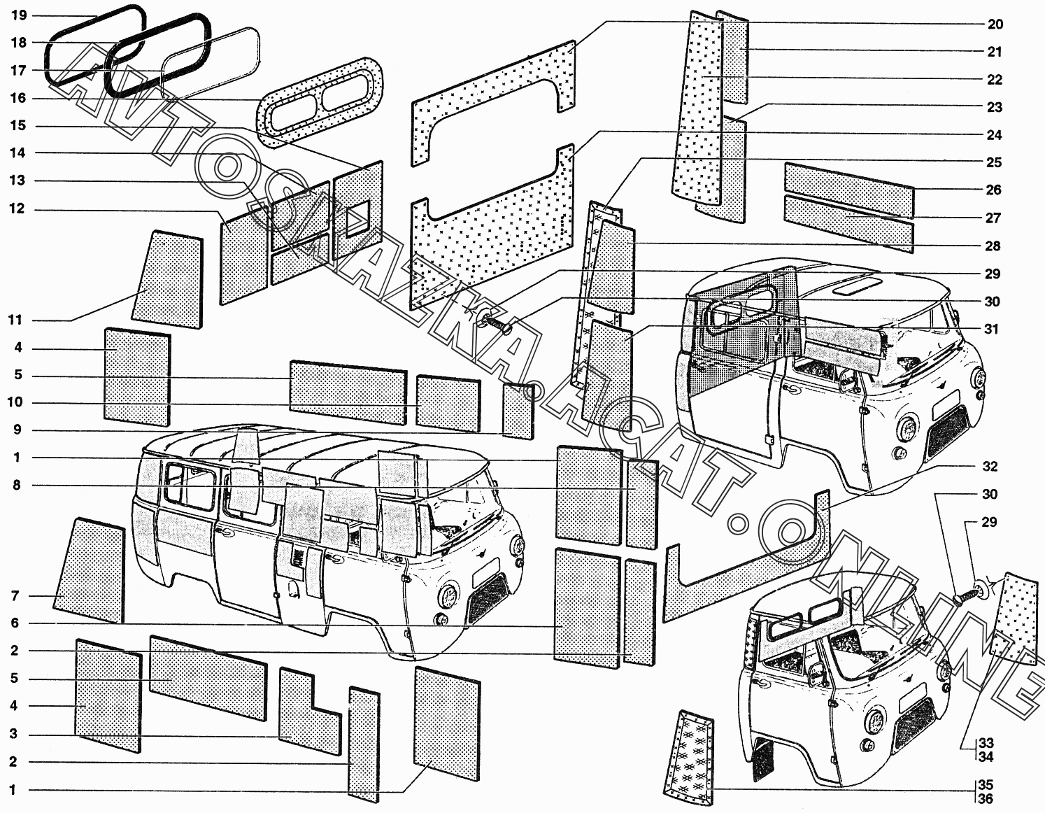 Термошумоизоляция боковины, обивка задка, окно задка УАЗ 39094 (390944 (Euro-2), 390944 (Euro-3), 390945 (Euro-2), 390945 (Euro-3))