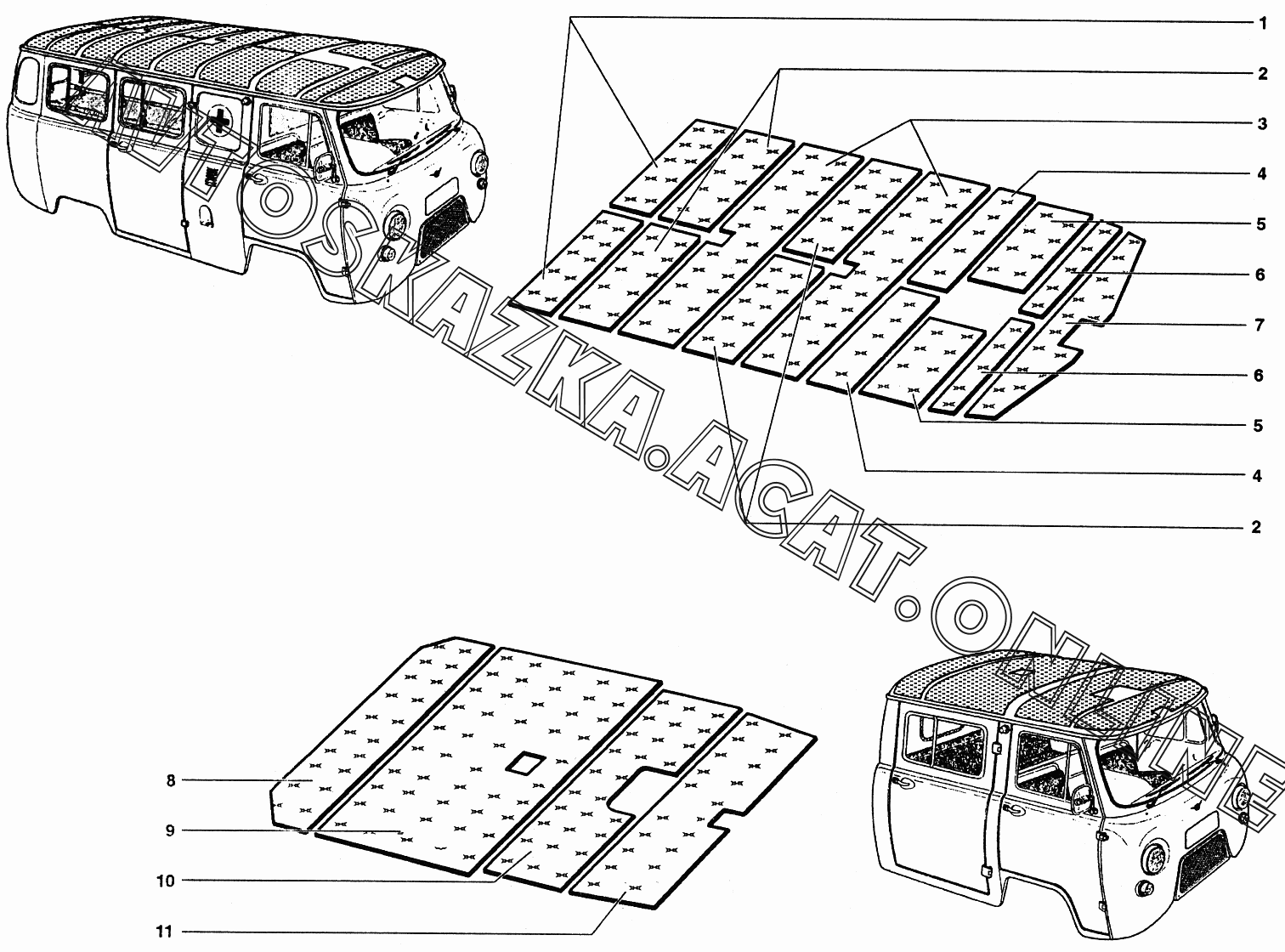 Термошумоизоляция крыши УАЗ 39094 (390944 (Euro-2), 390944 (Euro-3), 390945 (Euro-2), 390945 (Euro-3))