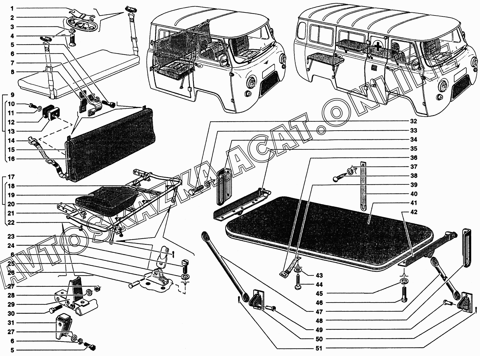 Сиденье заднее и сиденье откидное УАЗ 39094 (390944 (Euro-2), 390944 (Euro-3), 390945 (Euro-2), 390945 (Euro-3))