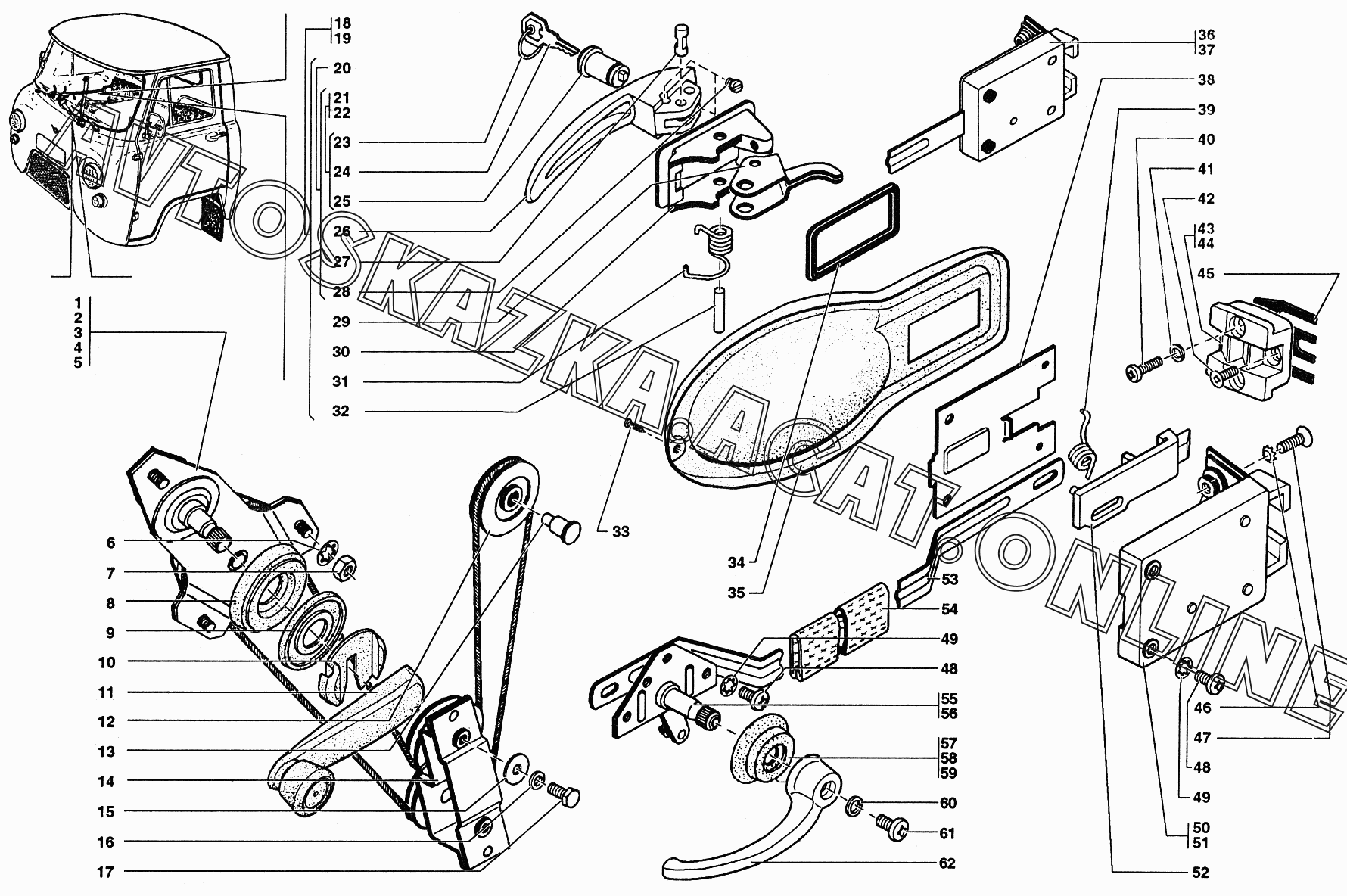 Механизм перемещения стекла передней двери, замок и ручки передней двери