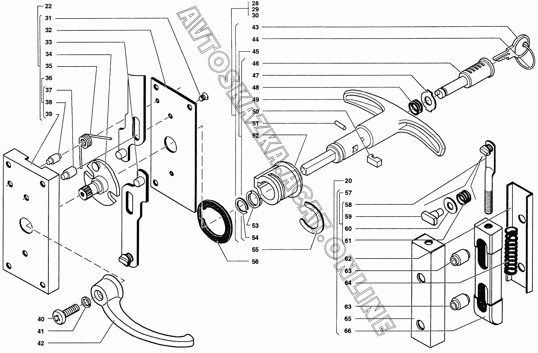 Замок и ручки двери задка УАЗ 39094 (390944 (Euro-2), 390944 (Euro-3), 390945 (Euro-2), 390945 (Euro-3))