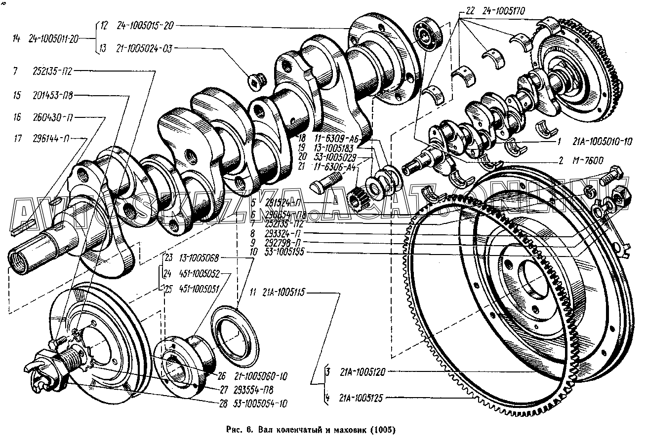 Вал коленчатый и маховик (1005) УАЗ 2206