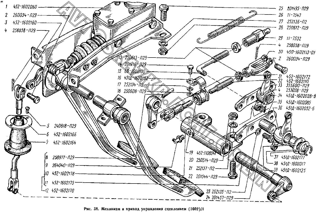 Механизм и привод управления сцеплением (1602)/1 УАЗ 2206