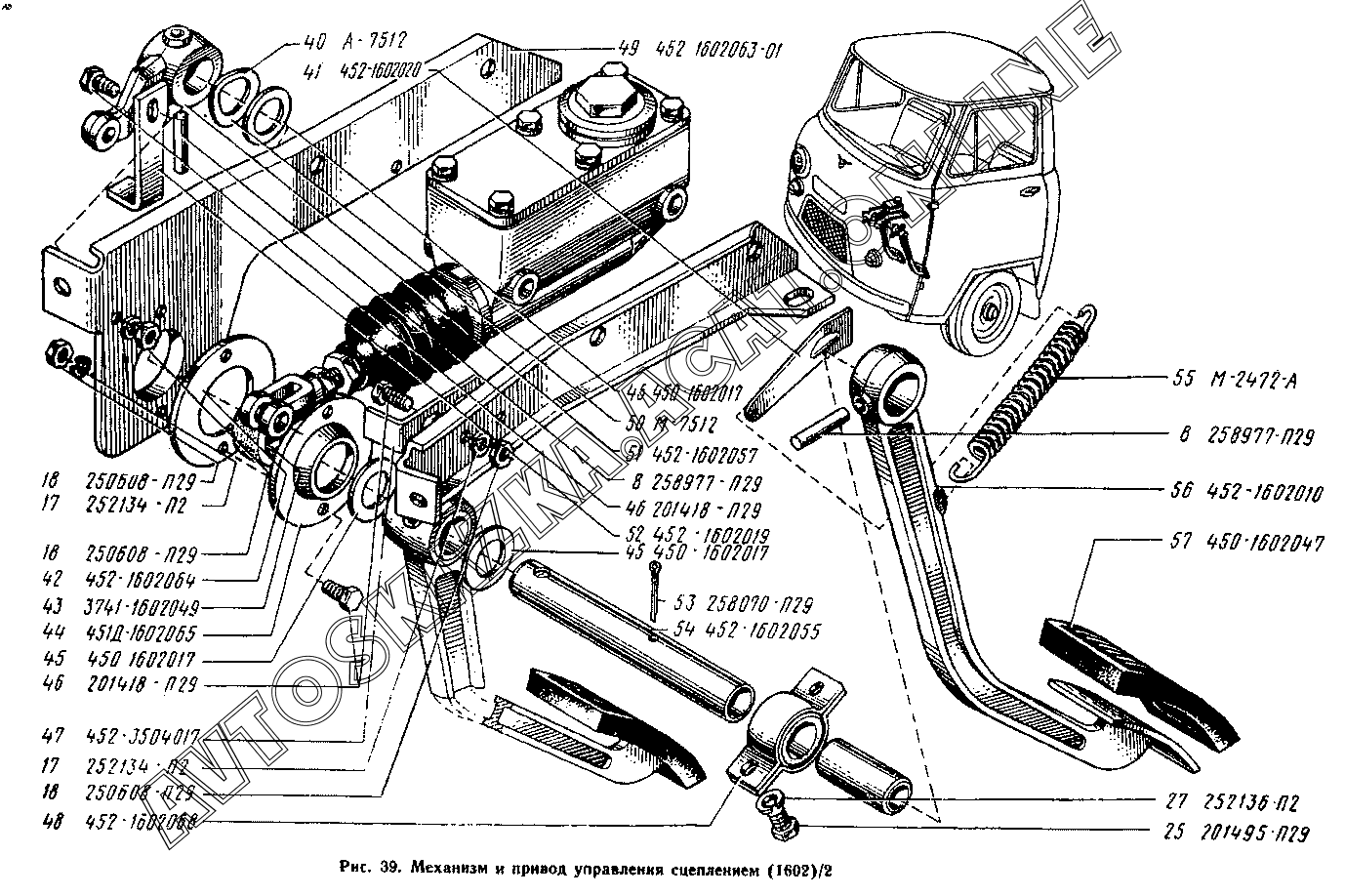 Механизм и привод управления сцеплением (1602)/2 УАЗ 2206