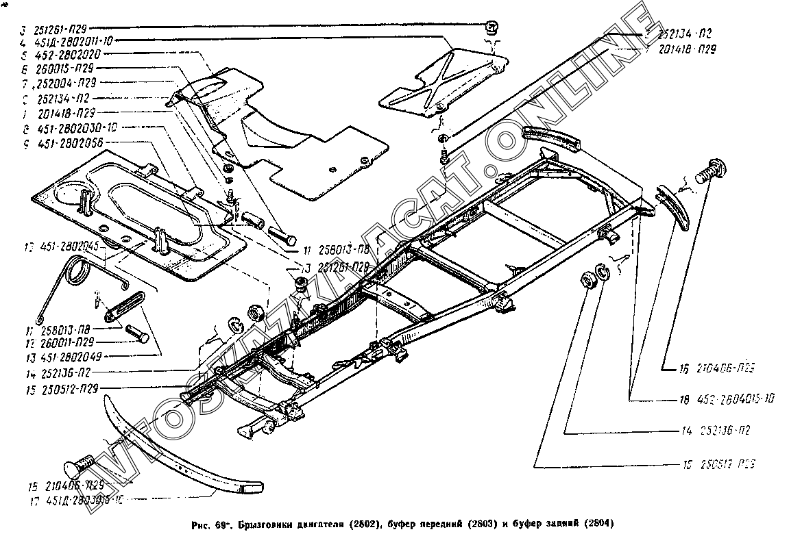 Брызговики двигателя (2802), буфер передний (2803) и буфер задний (2804) УАЗ 2206