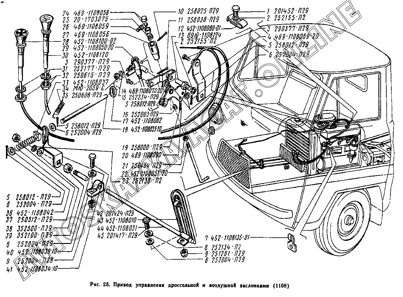 Привод управления дроссельной и воздушной заслонками (1108) УАЗ 3741