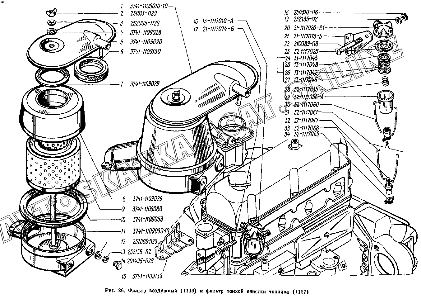 Фильтр воздушный (1109) и фильтр тонкой очистки топлива (1117) УАЗ 3741