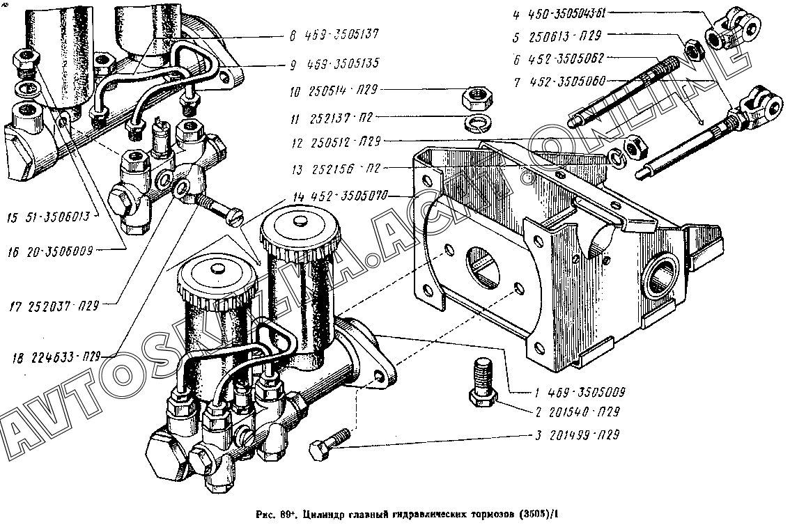 Цилиндр главный гидравлических тормозов (3505)/1 УАЗ 3741