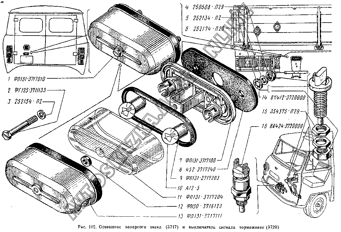 Освещение номерного знака (3717) и выключатель сигнала торможения (3720) УАЗ 3741