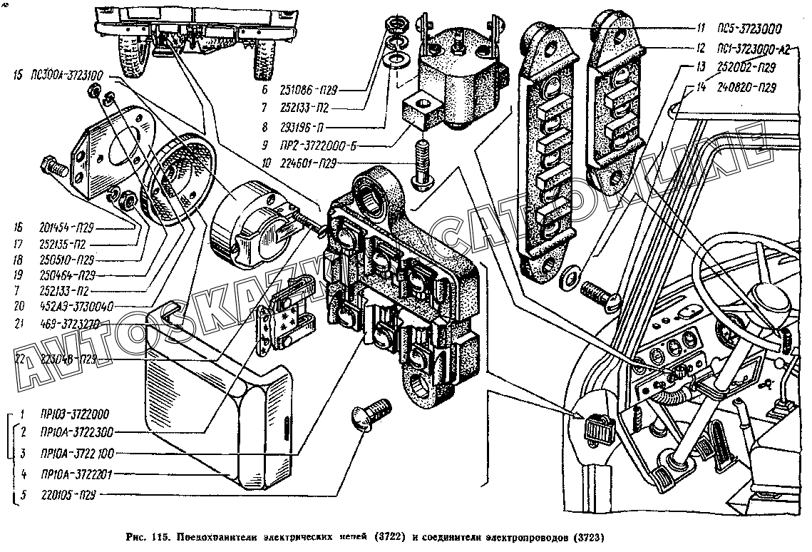 Предохранители электрических цепей (3722) и соединители электропроводов (3723) УАЗ 3741