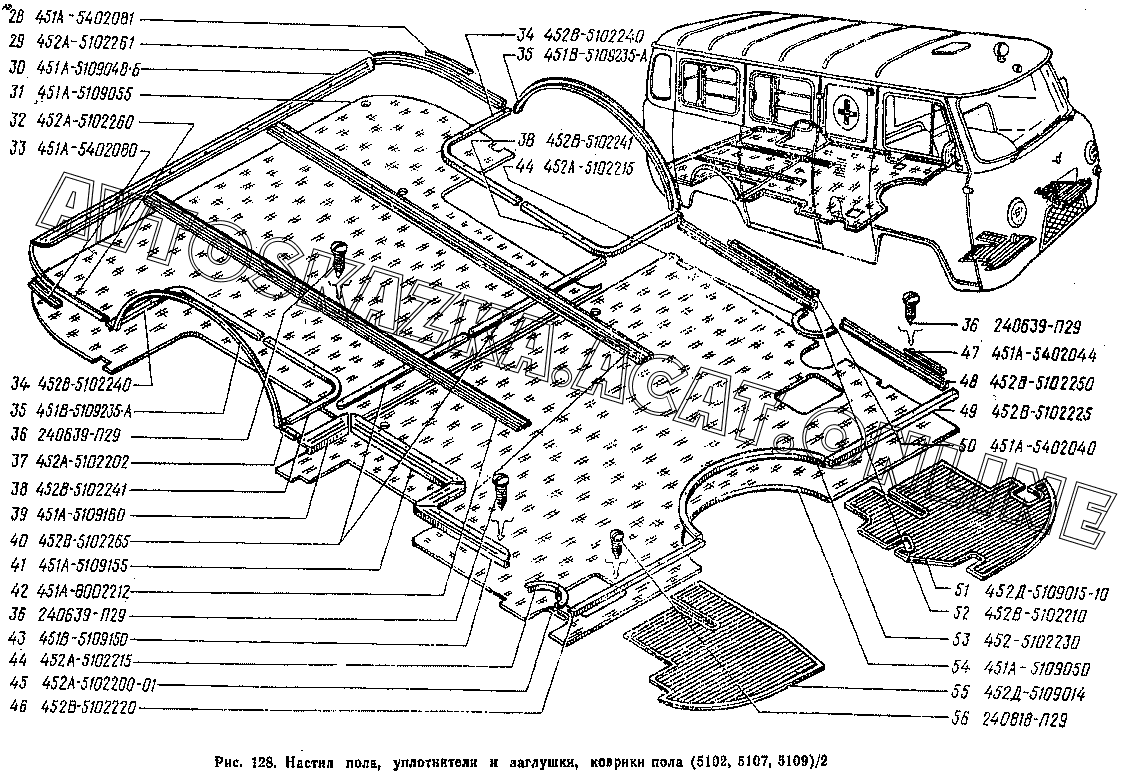 Настил пола, уплотнители и заглушки, коврики пола (5102, 5107, 5109)/2 УАЗ 3741
